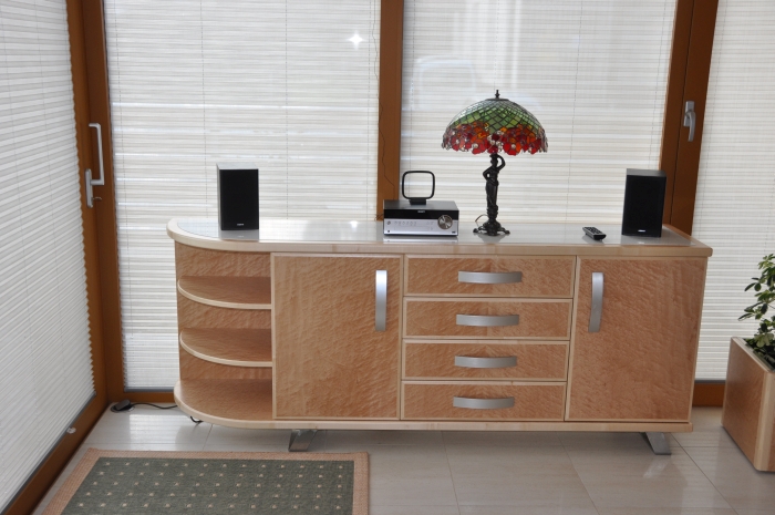 • Furnir ptičji javor v kombinaciji z masivnimi nalimki evropskega javorja