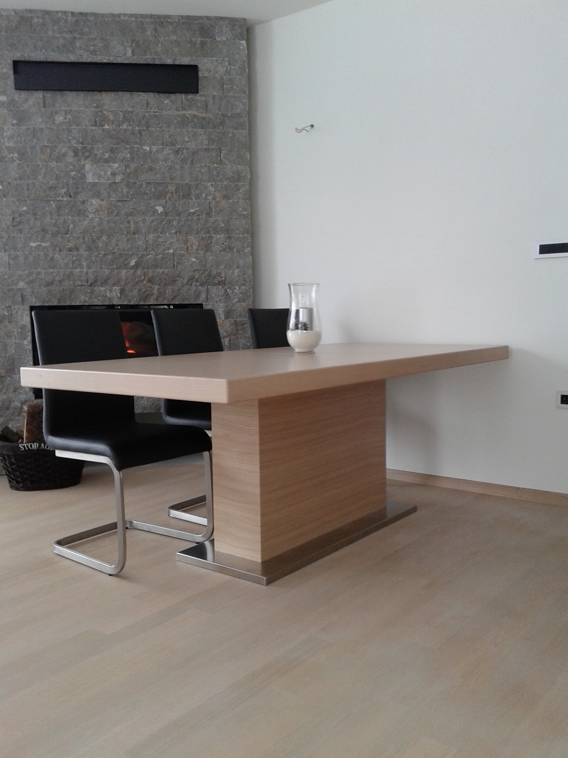 - Miza je iz beljenega hrasta (furnir) z masivnimi hrastovimi nalimki