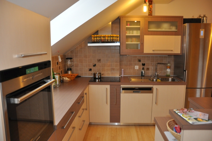 - Na mizni plošči je kaljeno steklo, ki ščiti mizo proti obrabi, klop je konzolno vpeta v steno