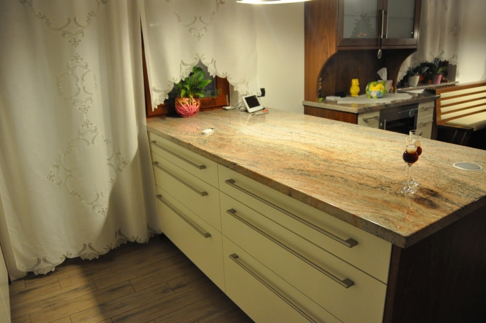 - Pult je iz naravnega kamna, v katerem je vgrajena izvlečna vtičnica