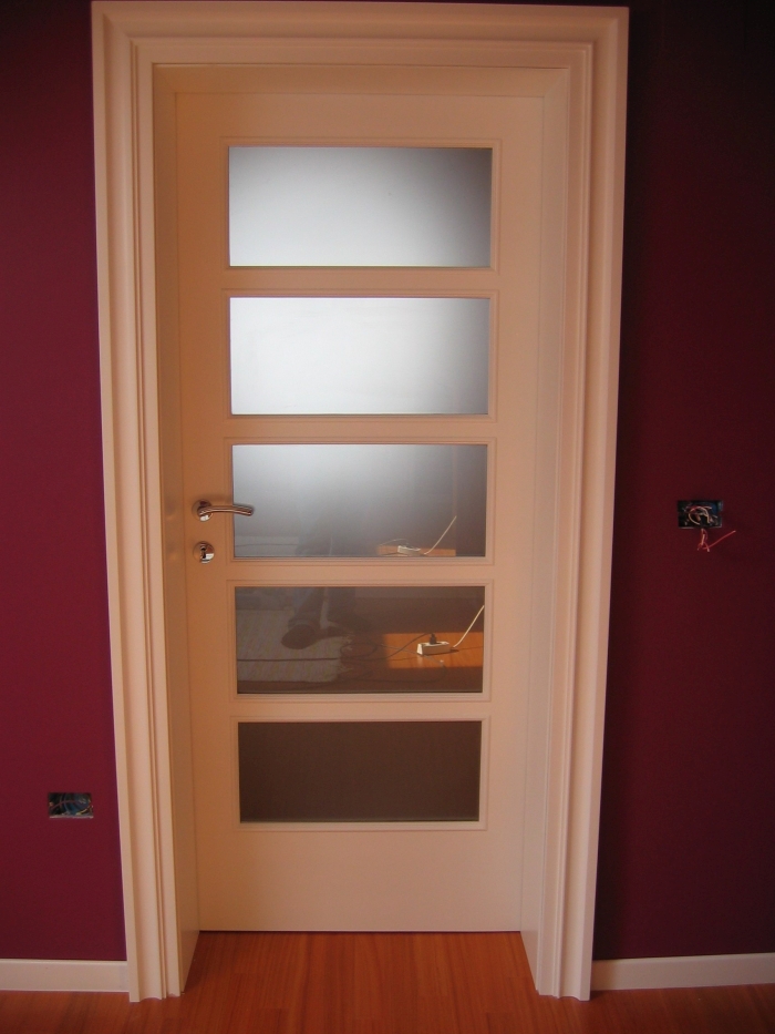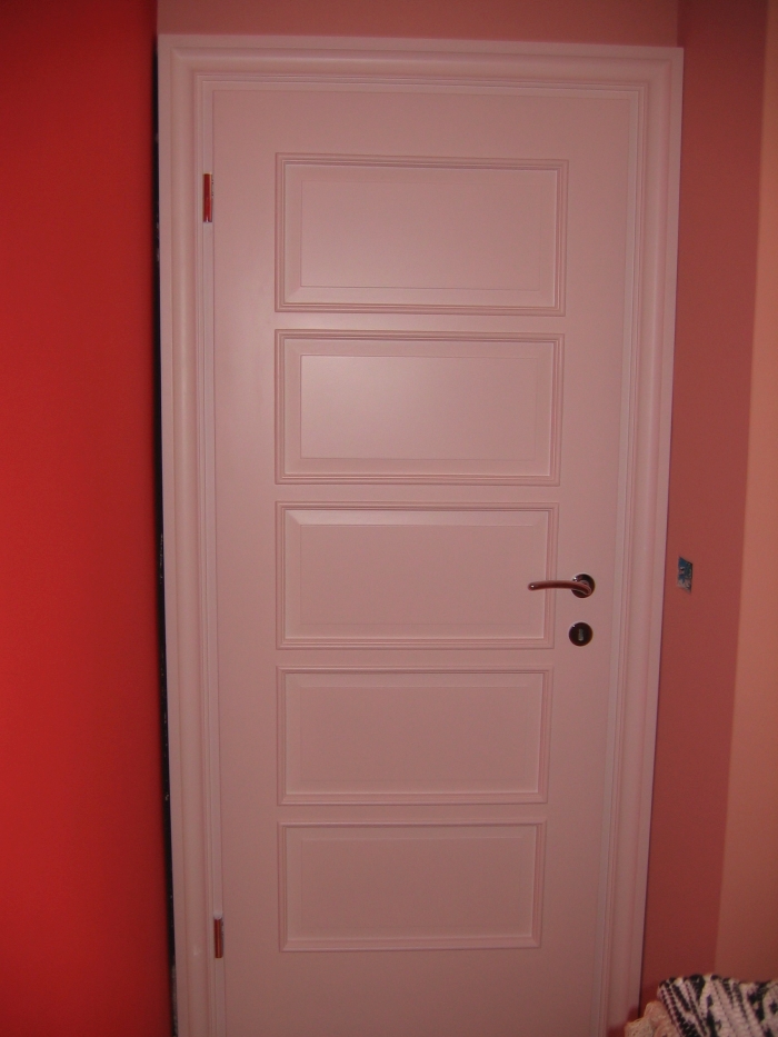 • Belo barvan MDF z masivnimi bordurastimi letvami okoli podboja