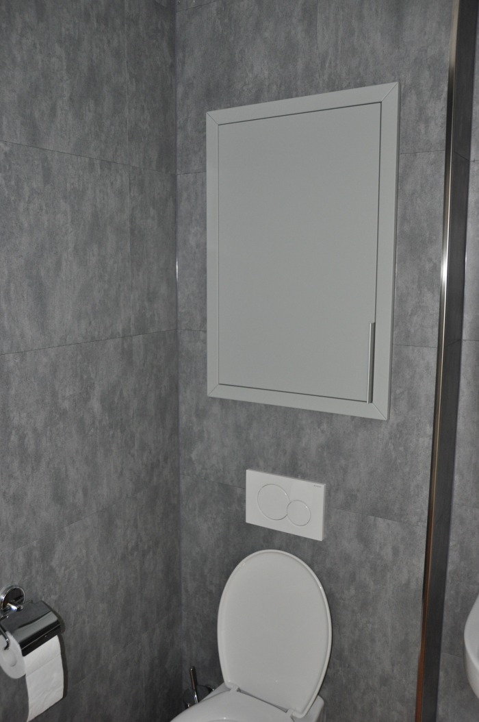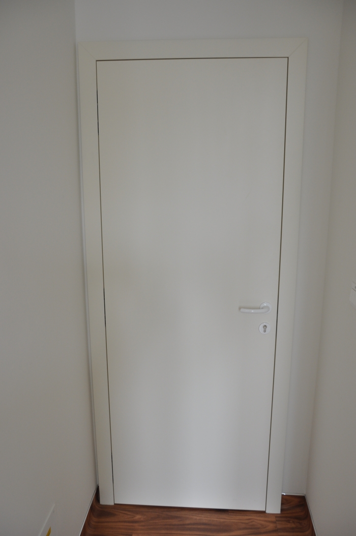 - Vrata so iz MDF-a in so belo barvana, imajo skrita nasadila in magnetno ključavnico