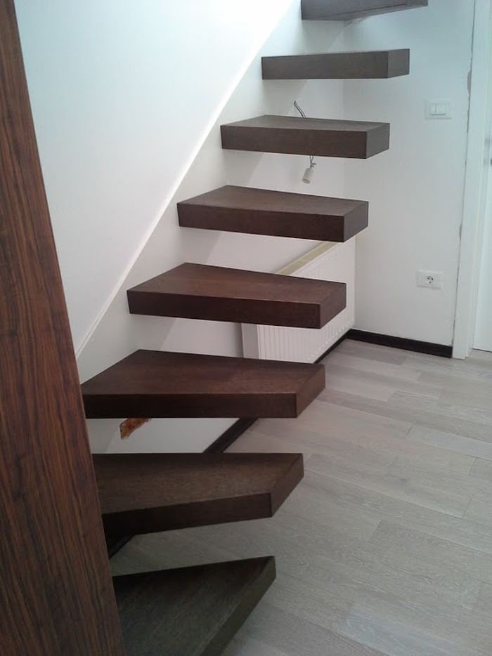 • konzolne hrastove stopnice, pritrjene na kovinske konzole